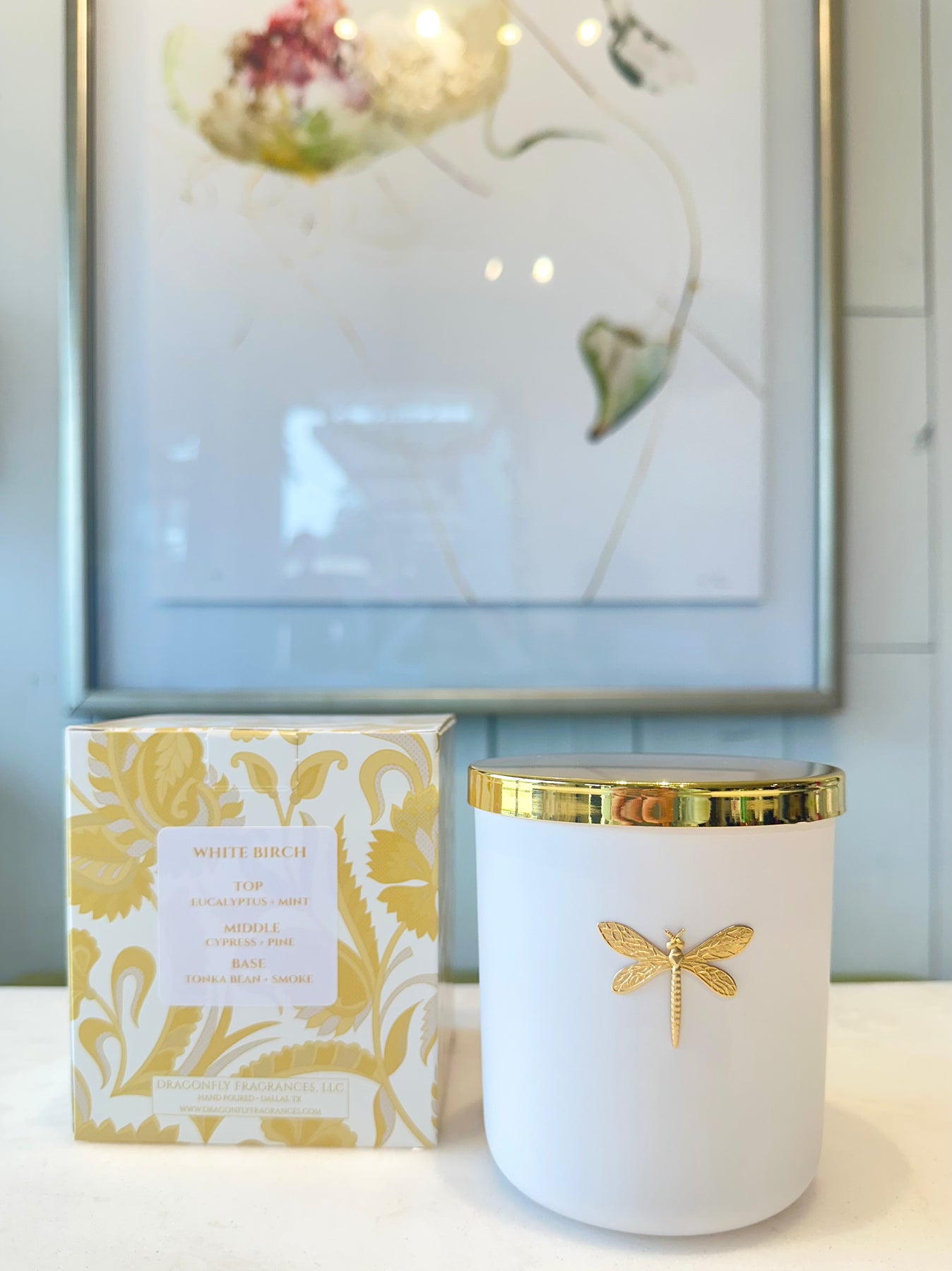• White Birch - Dragonfly's White Birch fragrance adds a new layer of sophistication with vivid notes of eucalyptus, cypress, and tonka bean, creating a unique aromatic crispness.  A fabulous choice for winter, this scent also has year-round appeal as a luxury evergreen fragrance.