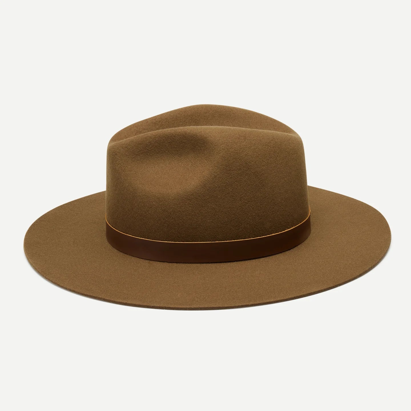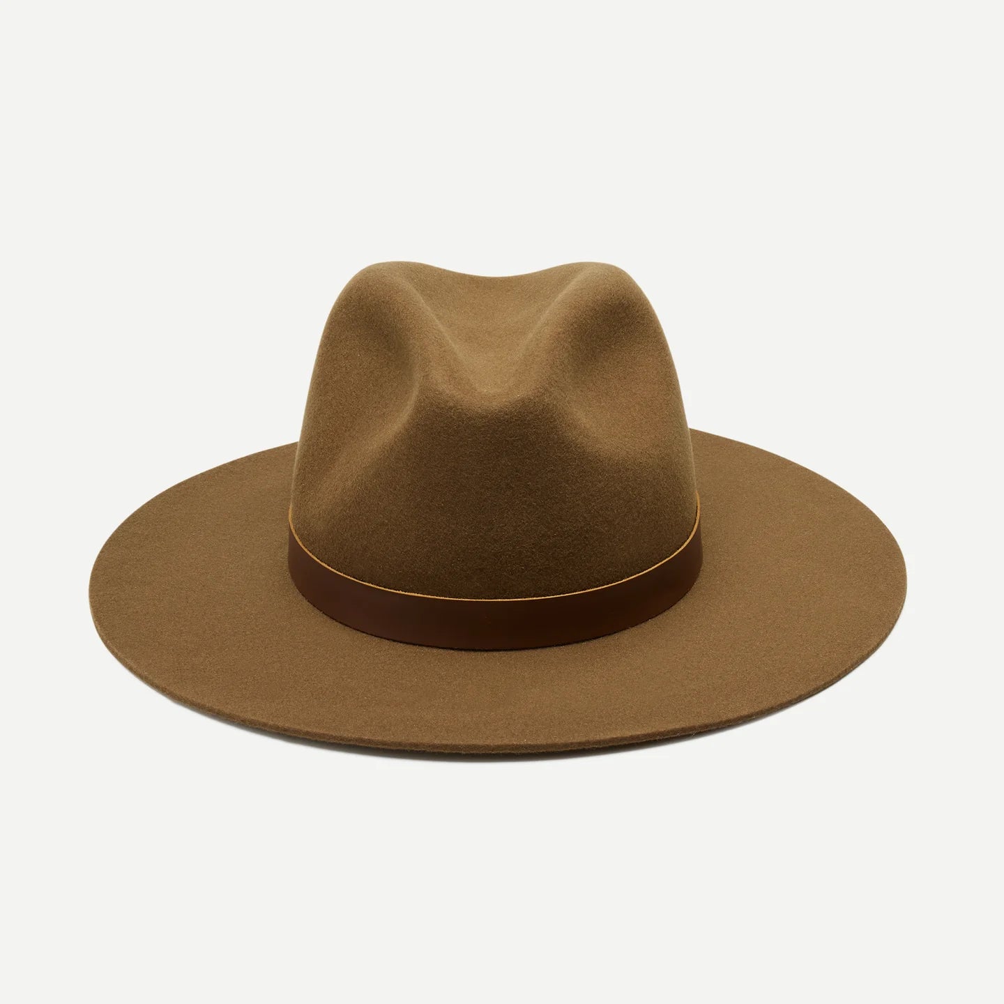 Our packable Lux fedora is made from 100% Australian wool felt and features a branded genuine leather trim finished with a gold toned round rivet. It's pinched crown and soft brim are playful and flirty, and go with almost any outfit.