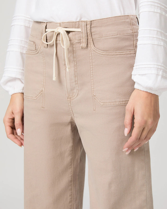 Ari is our modern high-rise, wide leg weekender pant with a lightweight, relaxed fit and an ankle-length inseam. Crafted from super soft denim with the perfect amount of stretch, this pair comes in a vintage-inspired light taupe brown hue with stitch-through utility pockets and a waistband tie.
