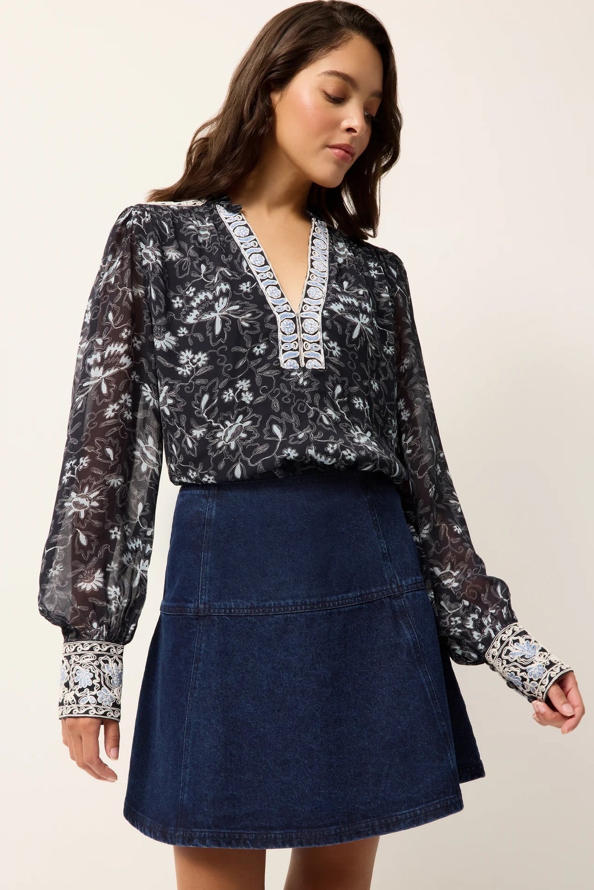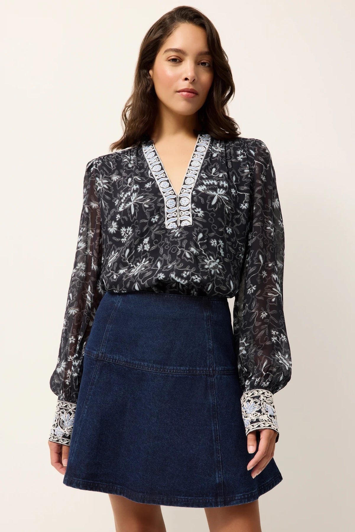 This versatile mini is fitted at the waist and hips with a gentle flare to create a flattering and playful silhouette. Cut from a soft dark wash denim, the Crawford skirt pairs beautifully with your favorite tops and knits.