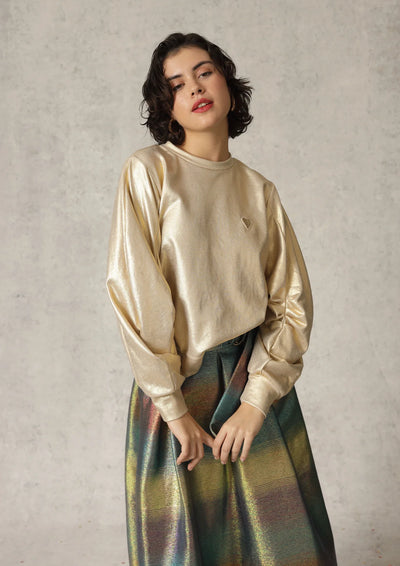 Marielle Metallic Satin Maxi Skirt in Champagne Mist