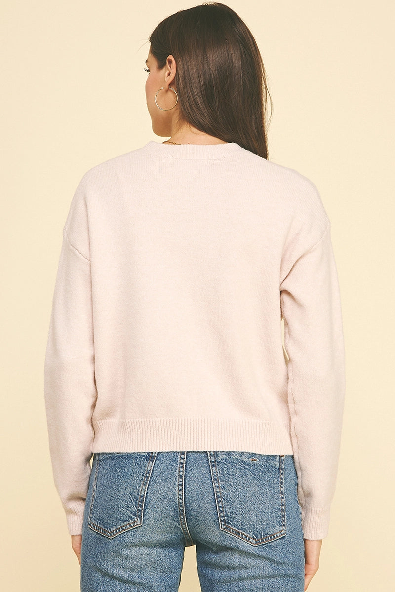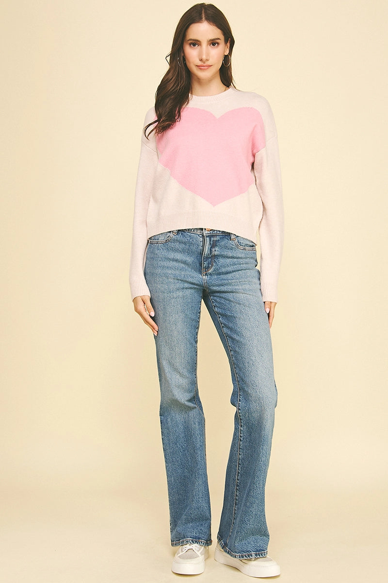 Heart Crew Neck Sweater in Light Pink