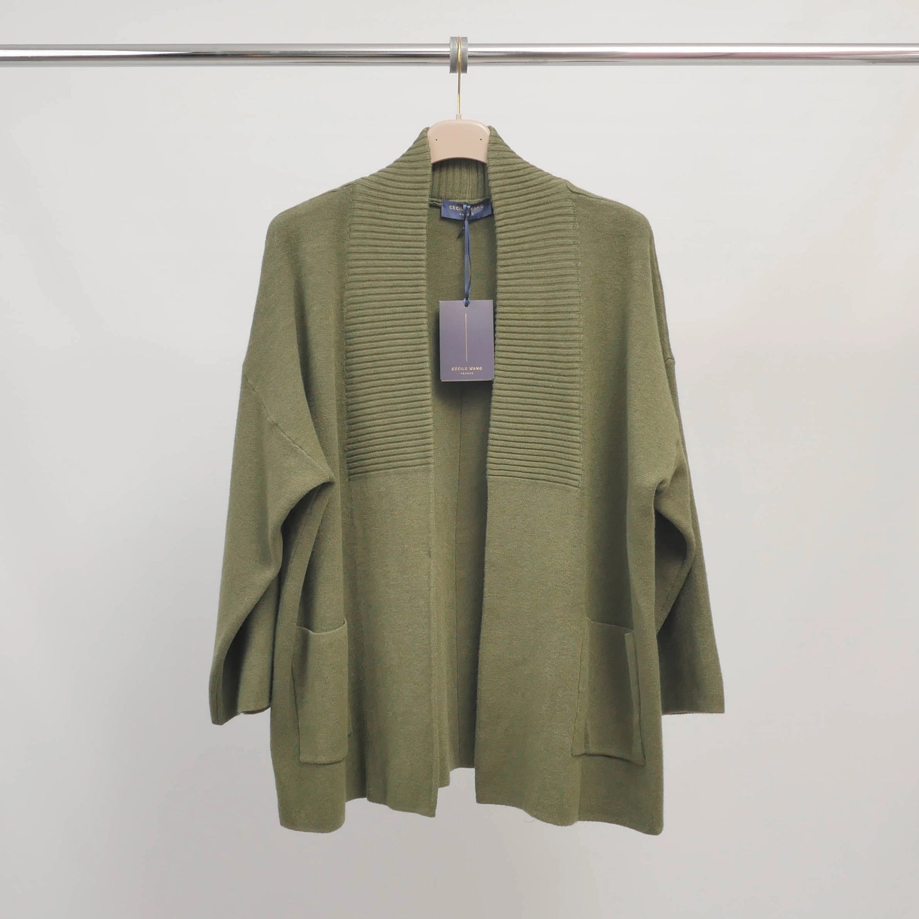 A comfortable minimalist style ally to face cool days with softness. This shawl collar cardigan stands out with its elegant ribbed finish on the collar and its fluid drape without closure. The patch pockets add a practical touch while highlighting its casual look. Its loose and enveloping fit makes it an ideal piece for easy layering over your outfits. Perfect with raw jeans and a white shirt for a cozy-chic silhouette every day.
