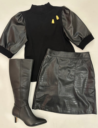 Faux Leather Horse Bit Skirt in Mahogany Croc