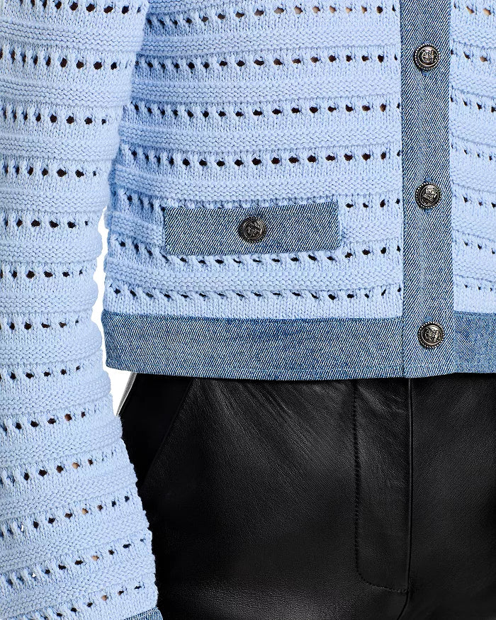 • Knit: 55% cotton/45% acrylic; woven trim: 100% cotton