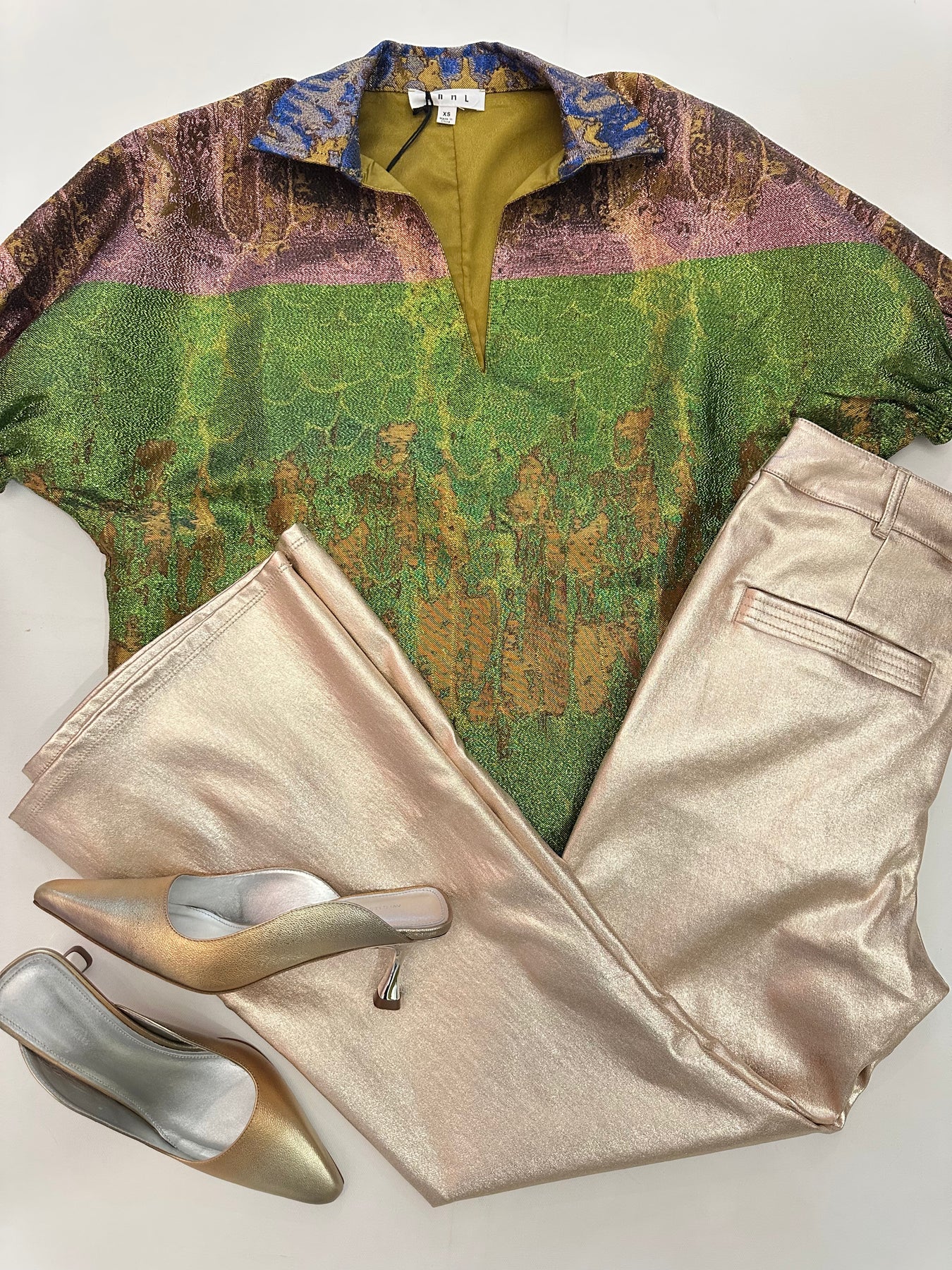 Short Sleeve Metallic Top in Multi