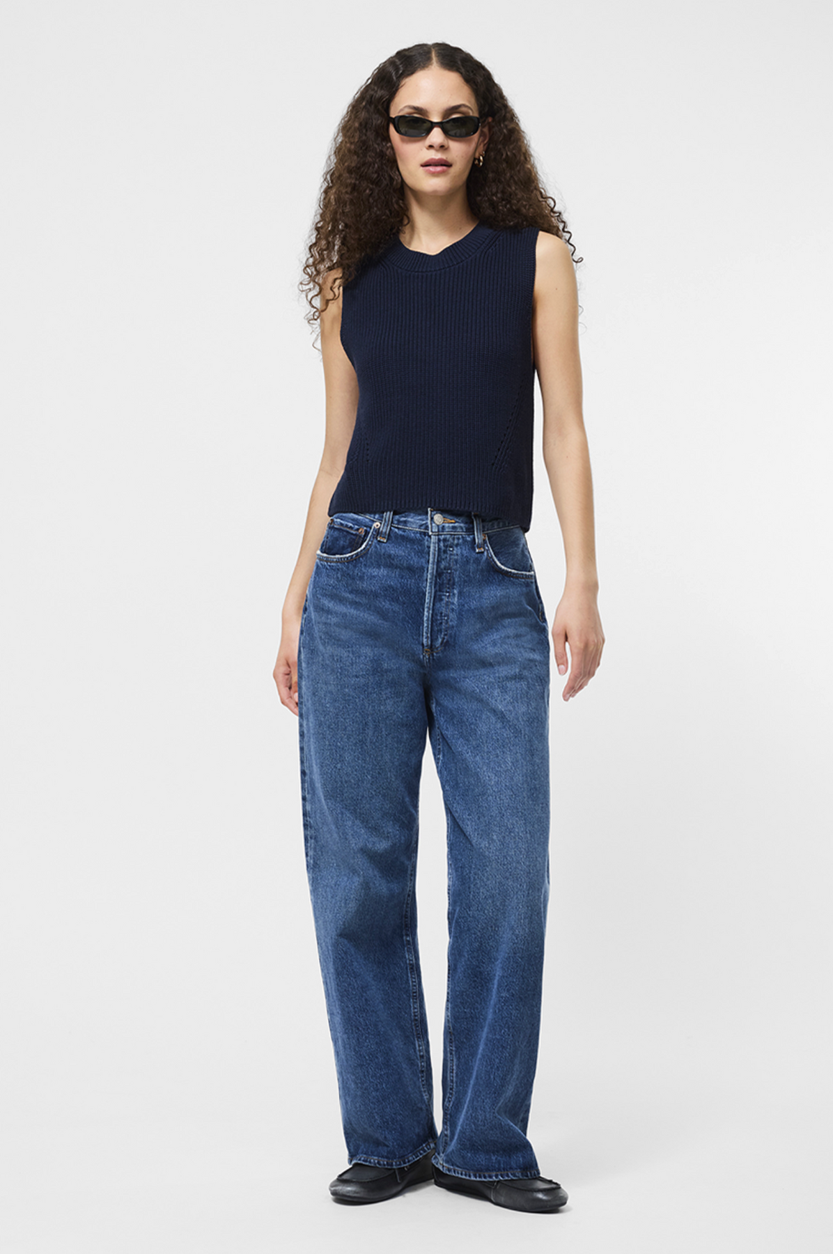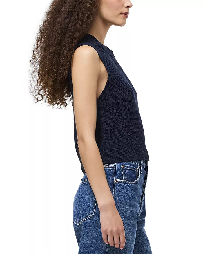 The perfect balance of comfort and chic. Add a touch of effortless elegance to your collection with French Connection's Mozart Knit Crew Neck Sleeveless Vest. Perfect for those who appreciate simplicity and style, this vest is a must-have piece for your fashion-forward wardrobe with a minimalist sleeveless body in a classic soft knit and contemporary box fit.