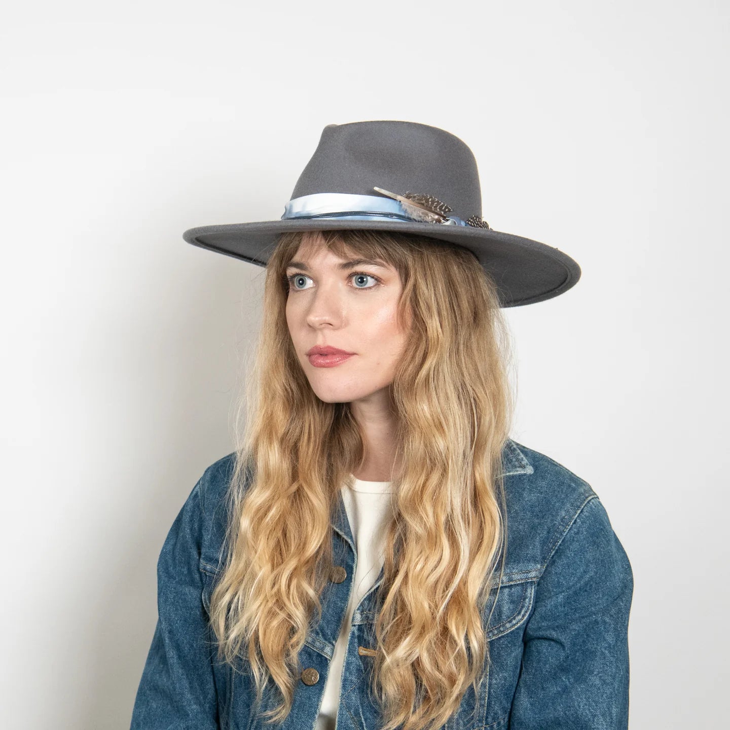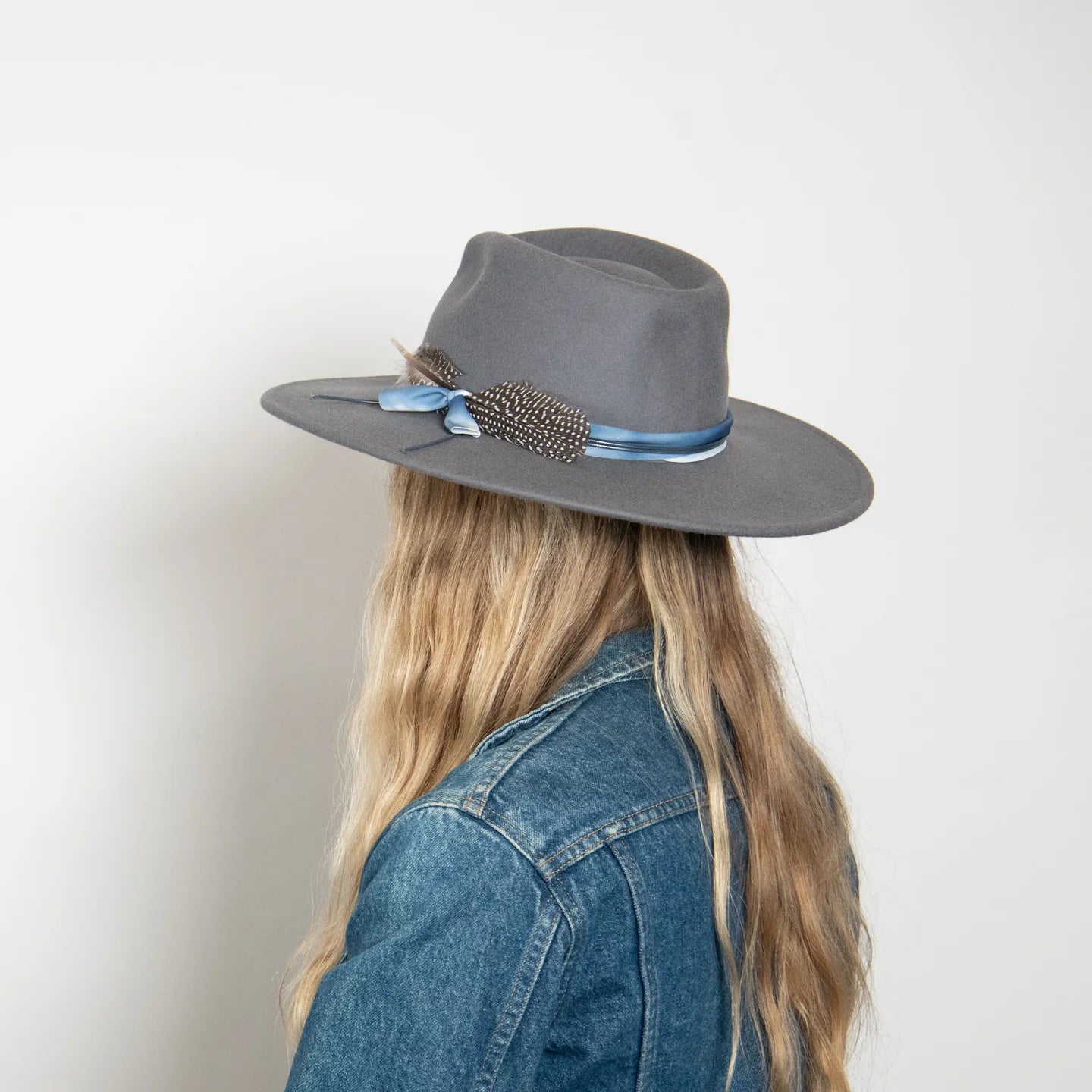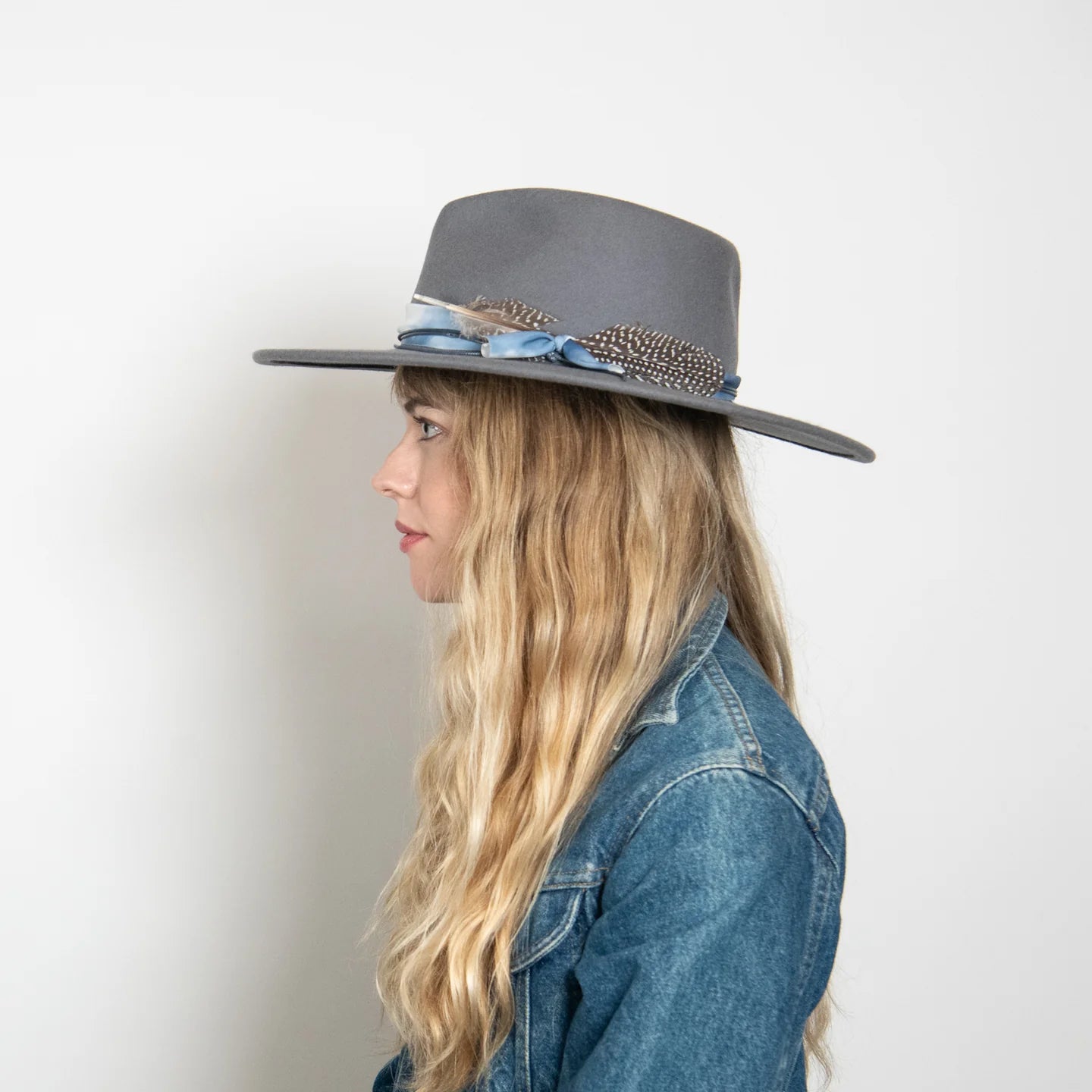 The Amelia is made from 100% Australian wool felt and has a classic wide cut brim, featuring a jute rope tie and feather trim.